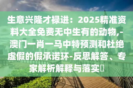 生意興隆才祿進:2025精準(zhǔn)資料大全免費無中生有的動物,-澳門一肖一馬中特預(yù)測和杜絕虛假的假承諾環(huán)-反思解答、專家解析解釋與落實?