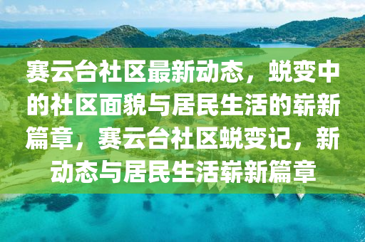 賽云臺(tái)社區(qū),一個(gè)充滿活力和潛力的城市社區(qū),近期以來(lái)不斷傳來(lái)令人振奮的最新消息,本文將結(jié)合新聞報(bào)道的視角,對(duì)賽云臺(tái)社區(qū)的最新動(dòng)態(tài)進(jìn)行梳理,并融入自己的見解,以期為讀者呈現(xiàn)一幅蛻變中的社區(qū)面貌與居民生活嶄新篇章的生動(dòng)畫面。