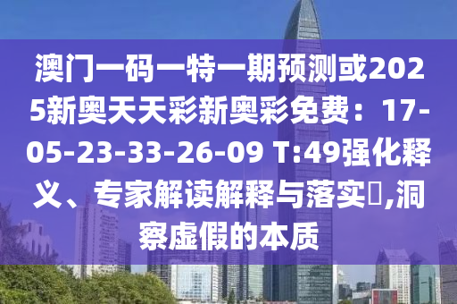 澳門一碼一特一期預(yù)測或2025新奧天天彩新奧彩免費:17-05-23-33-26-09 T:49:強化釋義、專家解讀解釋與落實?