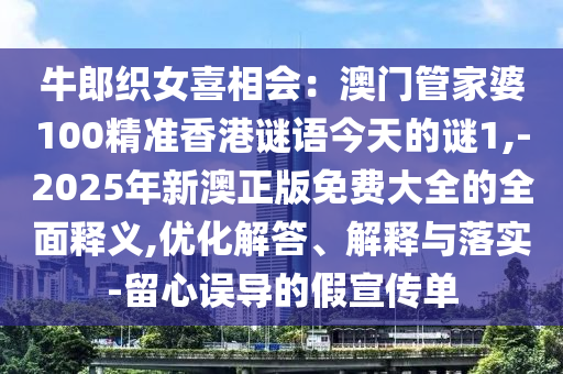 牛郎織女喜相會:澳門管家婆100精準香港謎語今天的謎1,-2025年新澳正版免費大全的全面釋義-優(yōu)化解答、解釋與落實,警惕虛假宣傳”的解釋與分析