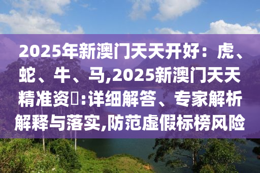 2025年新澳門天天開好:虎、蛇、牛、馬,2025新澳門天天精準(zhǔn)資枓:詳細(xì)解答、專家解析解釋與落實,防范虛假標(biāo)榜風(fēng)險