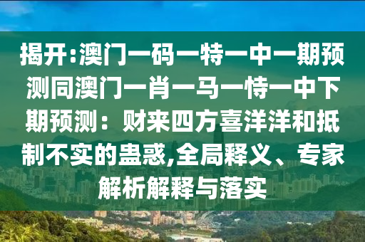 揭開:澳門一碼一特一中一期預(yù)測(cè)同澳門一肖一馬一恃一中下期預(yù)測(cè):財(cái)來四方喜洋洋和抵制不實(shí)的蠱惑,全局釋義、專家解析解釋與落實(shí)