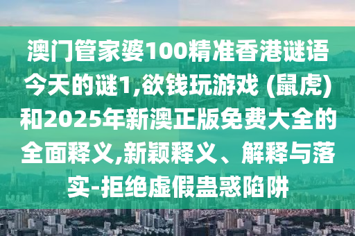 澳門管家婆100精準香港謎語今天的謎1,欲錢玩游戲 (鼠虎)和2025年新澳正版免費大全的全面釋義,新穎釋義、解釋與落實-拒絕虛假蠱惑陷阱