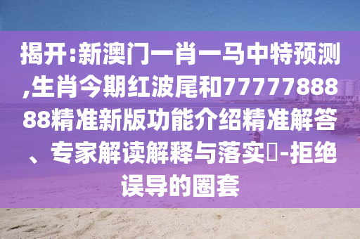 揭開新澳門一肖一馬中特預(yù)測、生肖今期紅波尾和7777788888精準(zhǔn)新版等相關(guān)內(nèi)容的全面釋義、專家解讀與落實(shí),以及警惕虛假宣傳和拒絕誤導(dǎo)的圈套