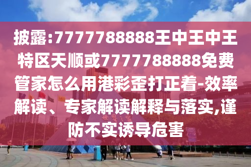 披露:7777788888王中王中王特區(qū)天順或7777788888免費(fèi)管家怎么用港彩歪打正著-效率解讀、專家解讀解釋與落實(shí),謹(jǐn)防不實(shí)誘導(dǎo)危害