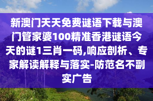 新澳門天天免費謎語下載與澳門管家婆100精準香港謎語今天的謎1三肖一碼的響應(yīng)剖析、專家解讀解釋與落實