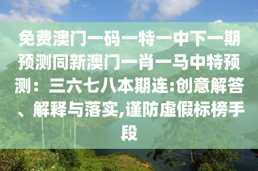 免費澳門一碼一特一中下一期預(yù)測同新澳門一肖一馬中特預(yù)測:三六七八本期連:創(chuàng)意解答、解釋與落實