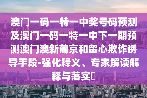 澳門一碼一特一中獎號碼預(yù)測及澳門一碼一特一中下一期預(yù)測澳門澳新葡京的強化釋義、專家解讀解釋與落實?