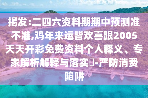 關(guān)于揭發(fā)“二四六資料期期中預(yù)測(cè)準(zhǔn)不準(zhǔn),雞年來運(yùn)皆歡喜與2005天天開彩免費(fèi)資料”的個(gè)人釋義、專家解析解釋與落實(shí)以及嚴(yán)防消費(fèi)陷阱