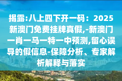 面對當前信息爆炸的時代,公眾需要更加警惕虛假宣傳,確保獲取信息的真實性和可靠性,本文將圍繞關鍵詞“揭露”、“八上四下開一碼”、“澳門免費掛牌”、“新澳門一肖一馬一特一中預測保障分析”、“專家解析解釋與落實”等進行全面釋義、解釋與落實,并提醒公眾對誤導的假信息保持警惕。