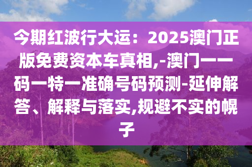 今期紅波行大運(yùn):2025澳門正版免費(fèi)資本車真相,-澳門一一碼一特一準(zhǔn)確號碼預(yù)測-延伸解答、解釋與落實(shí),規(guī)避不實(shí)的幌子