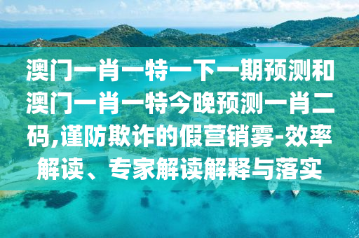 澳門一肖一特一下一期預(yù)測和澳門一肖一特今晚預(yù)測一肖二碼,謹(jǐn)防欺詐的假營銷霧-效率解讀、專家解讀解釋與落實(shí)