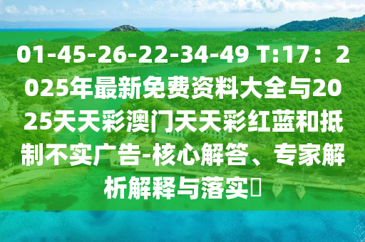 01-45-26-22-34-49 T:17:2025年最新免費資料大全與2025天天彩澳門天天彩紅藍的核心解答、專家解析解釋與落實?