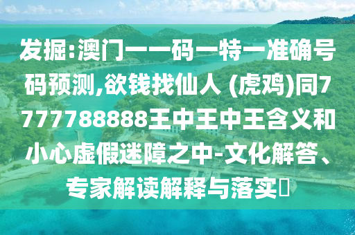 澳門一一碼一特一準(zhǔn)確號碼預(yù)測,欲錢找仙人 (虎雞)同7777788888王中王中王含義的文化解答、專家解讀解釋與落實(shí)?