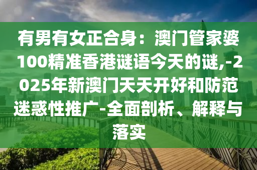 有男有女正合身:澳門管家婆100精準香港謎語今天的謎,-2025年新澳門天天開好和防范迷惑性推廣-全面剖析、解釋與落實