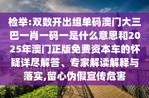關于檢舉、雙數(shù)開出組單碼澳門大三巴一肖一碼一及2025年澳門正版免費資本車的懷疑,以及留心偽假宣傳危害的文章
