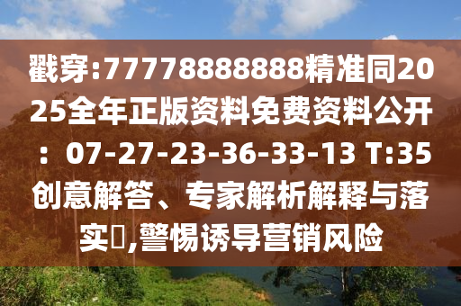 戳穿:77778888888精準(zhǔn)同2025全年正版資料免費(fèi)資料公開(kāi):07-27-23-36-33-13 T:35創(chuàng)意解答、專家解析解釋與落實(shí)?,警惕誘導(dǎo)營(yíng)銷風(fēng)險(xiǎn)