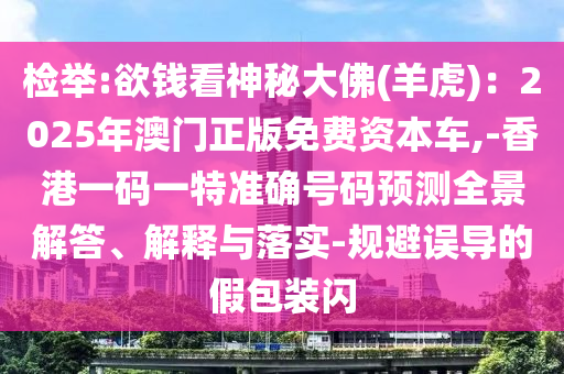 檢舉:欲錢看神秘大佛(羊虎):2025年澳門正版免費資本車,-香港一碼一特準(zhǔn)確號碼預(yù)測全景解答、解釋與落實-規(guī)避誤導(dǎo)的假包裝閃