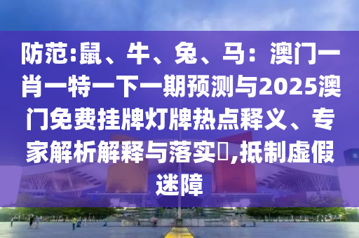 關于防范鼠、牛、兔、馬生肖預測與澳門免費掛牌燈牌熱點的問題,我們需要從全面釋義、專家解讀與落實以及警惕虛假宣傳三個方面進行深入解析,以下是對此現象的詳細分析。