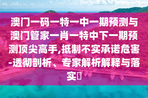 澳門一碼一特一中一期預測與澳門管家一肖一特中下一期預測頂尖高手:透徹剖析、專家解析解釋與落實?