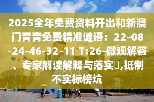 2025全年免費資料開出和新澳門青青免費精準謎語:22-08-24-46-32-11 T:26的微觀解答、專家解讀解釋與落實?