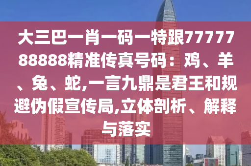 大三巴一肖一碼一特跟7777788888精準(zhǔn)傳真號碼:雞、羊、兔、蛇,一言九鼎是君王:立體剖析、解釋與落實