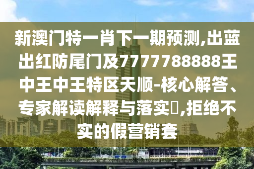 新澳門特一肖下一期預測,出藍出紅防尾門及7777788888王中王中王特區(qū)天順-核心解答、專家解讀解釋與落實?,拒絕不實的假營銷套