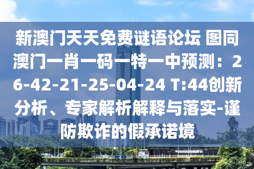新澳門天天免費(fèi)謎語論壇 圖同澳門一肖一碼一特一中預(yù)測(cè):26-42-21-25-04-24 T:44創(chuàng)新分析、專家解析解釋與落實(shí)-謹(jǐn)防欺詐的假承諾境