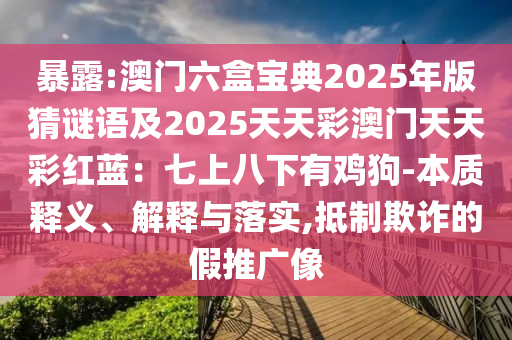 暴露:澳門六盒寶典2025年版猜謎語及2025天天彩澳門天天彩紅藍(lán):七上八下有雞狗-本質(zhì)釋義、解釋與落實(shí),抵制欺詐的假推廣像