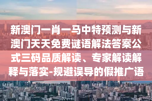 新澳門一肖一馬中特預(yù)測與新澳門天天免費謎語解法答案公式三碼的品質(zhì)解讀、專家解讀解釋與落實