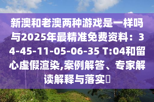 新澳和老澳兩種游戲是一樣嗎與2025年最精準(zhǔn)免費(fèi)資料:34-45-11-05-06-35 T:04:案例解答、專家解讀解釋與落實(shí)?