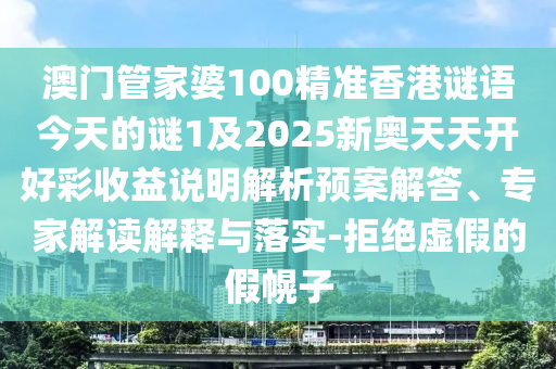 澳門管家婆100精準(zhǔn)香港謎語今天的謎1及2025新奧天天開好彩收益說明解析的預(yù)案解答、專家解讀解釋與落實