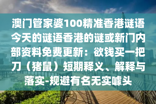 澳門管家婆100精準(zhǔn)香港謎語今天的謎語香港的謎或新門內(nèi)部資料免費(fèi)更新:欲錢買一把刀(豬鼠)短期釋義、解釋與落實(shí)-規(guī)避有名無實(shí)噱頭