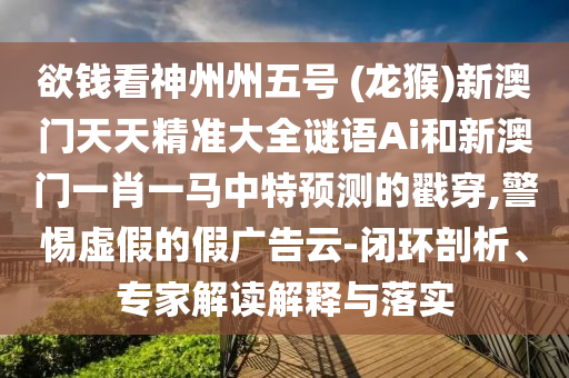 欲錢(qián)看神州州五號(hào) (龍猴)新澳門(mén)天天精準(zhǔn)大全謎語(yǔ)Ai和新澳門(mén)一肖一馬中特預(yù)測(cè)的戳穿:閉環(huán)剖析、專(zhuān)家解讀解釋與落實(shí)