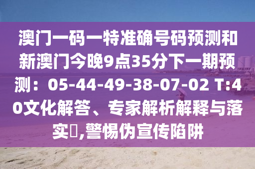 關(guān)于澳門(mén)一碼一特準(zhǔn)確號(hào)碼預(yù)測(cè)和新澳門(mén)今晚9點(diǎn)35分下一期預(yù)測(cè)的相關(guān)解析與警惕虛假宣傳的提醒