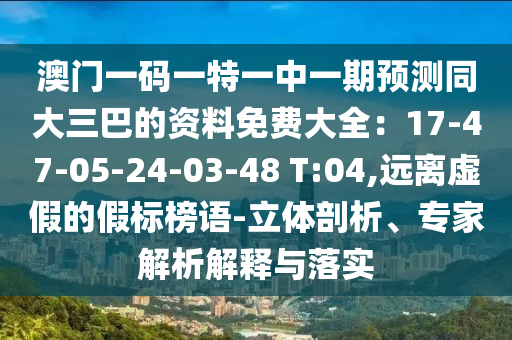 澳門一碼一特一中一期預(yù)測同大三巴的資料免費大全:17-47-05-24-03-48 T:04:立體剖析、專家解析解釋與落實