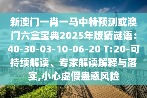 新澳門(mén)一肖一馬中特預(yù)測(cè)或澳門(mén)六盒寶典2025年版猜謎語(yǔ):40-30-03-10-06-20 T:20的可持續(xù)解讀、專(zhuān)家解讀解釋與落實(shí)