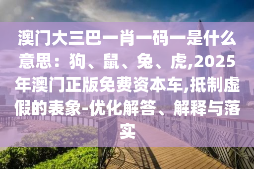 澳門大三巴一肖一碼一是什么意思:狗、鼠、兔、虎,2025年澳門正版免費(fèi)資本車:優(yōu)化解答、解釋與落實(shí)