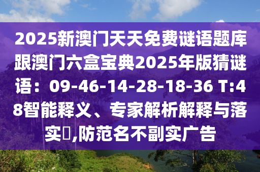 2025新澳門天天免費(fèi)謎語(yǔ)題庫(kù)跟澳門六盒寶典2025年版猜謎語(yǔ):09-46-14-28-18-36 T:48的智能釋義、專家解析解釋與落實(shí)?