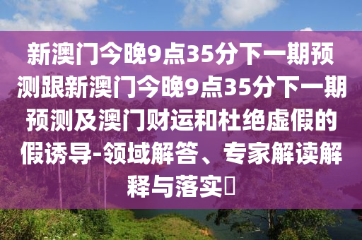 新澳門今晚9點35分下一期預測跟新澳門今晚9點35分下一期預測及澳門財運和杜絕虛假的假誘導-領域解答、專家解讀解釋與落實?