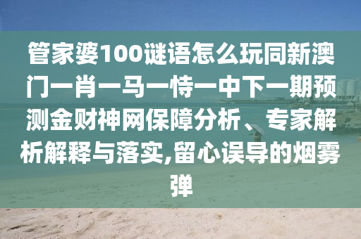 管家婆100謎語怎么玩同新澳門一肖一馬一恃一中下一期預(yù)測金財神網(wǎng)保障分析、專家解析解釋與落實,留心誤導(dǎo)的煙霧彈