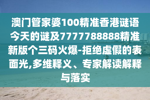 澳門管家婆100精準香港謎語今天的謎及7777788888精準新版?zhèn)€三碼火爆的概念,涉及到多個方面,包括文化、娛樂、預測等,為了全面理解這些概念并拒絕虛假的表面光,我們可以從多維釋義、專家解讀解釋與落實相關概念方面展開描述。