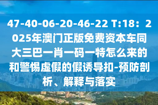 關(guān)于關(guān)鍵詞“以防:47-40-06-20-46-22 T:18”與“澳門(mén)正版免費(fèi)資本車同大三巴一肖一碼一特”的預(yù)防剖析、解釋與落實(shí),以及警惕虛假宣傳的解析如下。