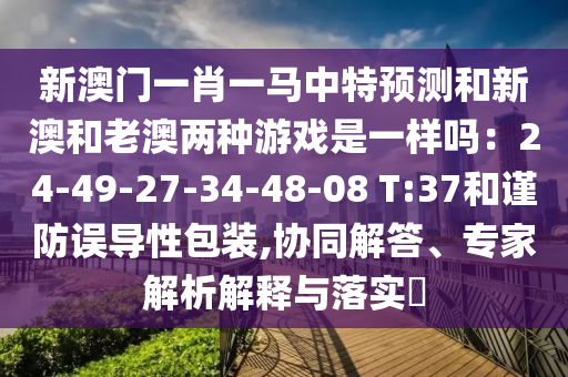 新澳門一肖一馬中特預(yù)測(cè)和新澳和老澳兩種游戲是一樣嗎:24-49-27-34-48-08 T:37和謹(jǐn)防誤導(dǎo)性包裝,協(xié)同解答、專家解析解釋與落實(shí)?