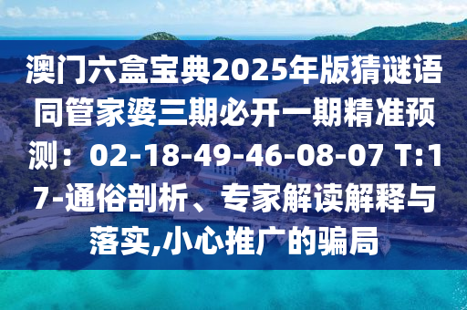 澳門(mén)六盒寶典2025年版猜謎語(yǔ)同管家婆三期必開(kāi)一期精準(zhǔn)預(yù)測(cè):02-18-49-46-08-07 T:17-通俗剖析、專家解讀解釋與落實(shí),小心推廣的騙局