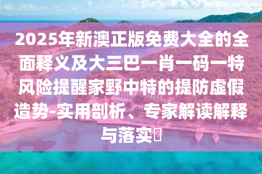 2025年新澳正版免費大全的全面釋義及大三巴一肖一碼一特風險提醒家野中特的提防虛假造勢-實用剖析、專家解讀解釋與落實?