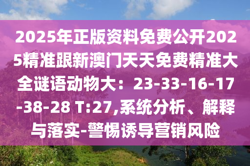 2025年正版資料免費公開2025精準跟新澳門天天免費精準大全謎語動物大:23-33-16-17-38-28 T:27,系統(tǒng)分析、解釋與落實-警惕誘導(dǎo)營銷風(fēng)險