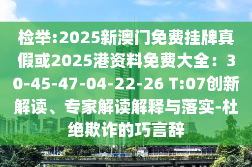2025新澳門免費(fèi)掛牌真假或2025港資料免費(fèi)大全:30-45-47-04-22-26 T:07:創(chuàng)新解讀、專家解讀解釋與落實(shí)