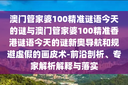 澳門管家婆100精準(zhǔn)謎語今天的謎與澳門管家婆100精準(zhǔn)香港謎語今天的謎新奧導(dǎo)航:前沿剖析、專家解析解釋與落實