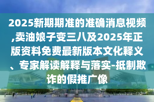 2025新期期準(zhǔn)的準(zhǔn)確消息視頻,賣油娘子變?nèi)思?025年正版資料免費(fèi)最新版本文化釋義、專家解讀解釋與落實(shí)-抵制欺詐的假推廣像